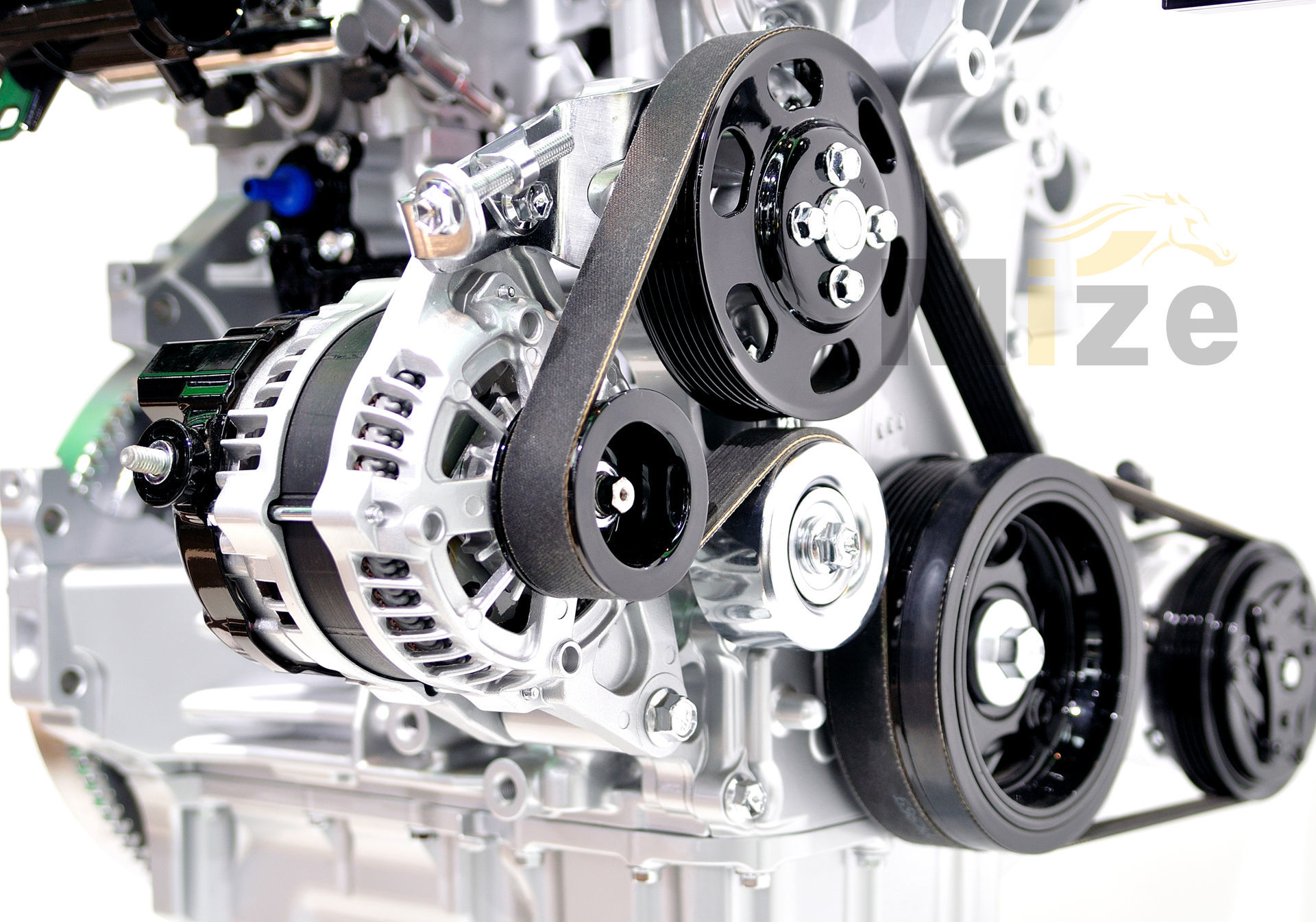 سير المكينة يعمل على ربط مكونات محرك السيارة عبر البكرات مع بعضها البعض حيث يربط بكرات كمبروسر المكيف والدينمو وطرمبة الماء مع بكرة الكرنك وبمجرد تشغيل محرك السيارة تبدأ بكرة الكرنك بالحركة وباقي المكونات بواسطة سير المحرك ويستمر في العمل حتى يتم إيقاف تشغيل المحرك.